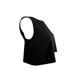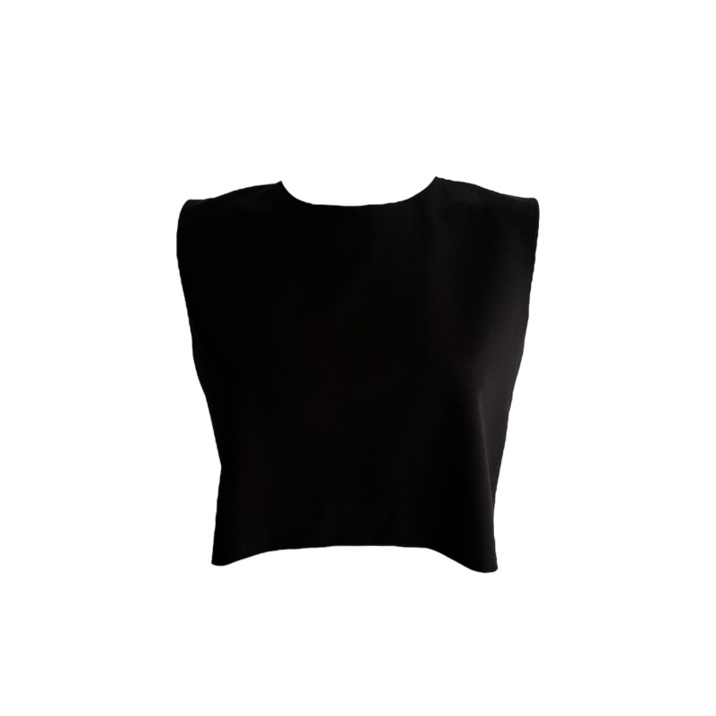 Asymetryczna czarna bluzka bez ramion INBLACK, charakteryzuje się minimalistycznym krojem z ozdobną kontrafałdą na plecach, w której kryje się zamek. Idealna na wiele okazji.