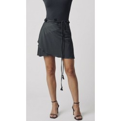 Lekka i zwiewna spódniczka plażowa w kolorze czarnym z ozdobnym paskiem z mini różami. Wykonana z elastycznej lycry, pięknie dopasowuje się do sylwetki i zapewnia komfort noszenia. Model wiązany na szarfę pozwala na łatwą regulację w talii i szybkie założenie na plaży lub przy basenie.