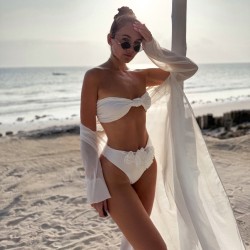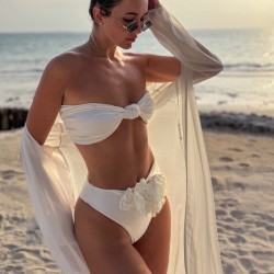 Bikini ELFI - kremowe majtki z wysokim stanem z trzema kremowymi przypinanymi różami.